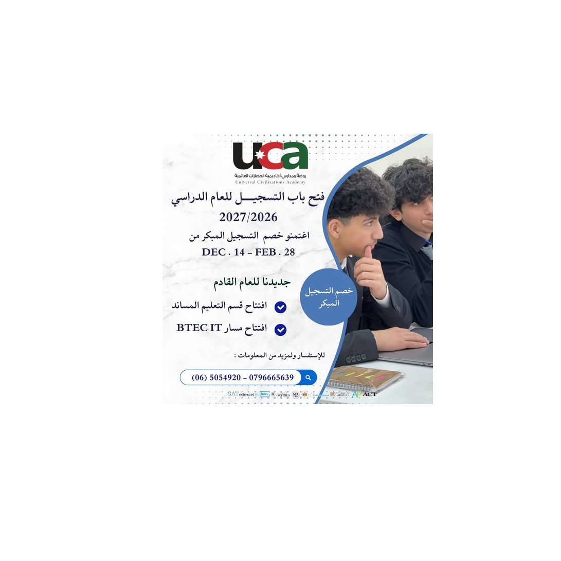 UCA offers an English-Arabic bilingual education from Kindergarten through grade 12; which prepares children for life in a rapidly changing world, along with preserving their Arab cultural heritage. Our American and British based curricula prepare students to cope with all systems; including the IGCSE and the American programs as they continue on with their secondary study. Our systems are well recognized and accepted in Jordanian and worldwide universities.